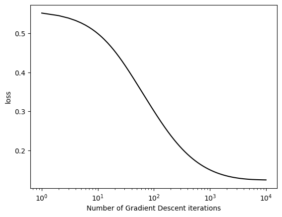 labs = plt.gca().set(xlabel = "Number of Gradient Descent iterations", ylabel="loss")Conduct Some Experiments!